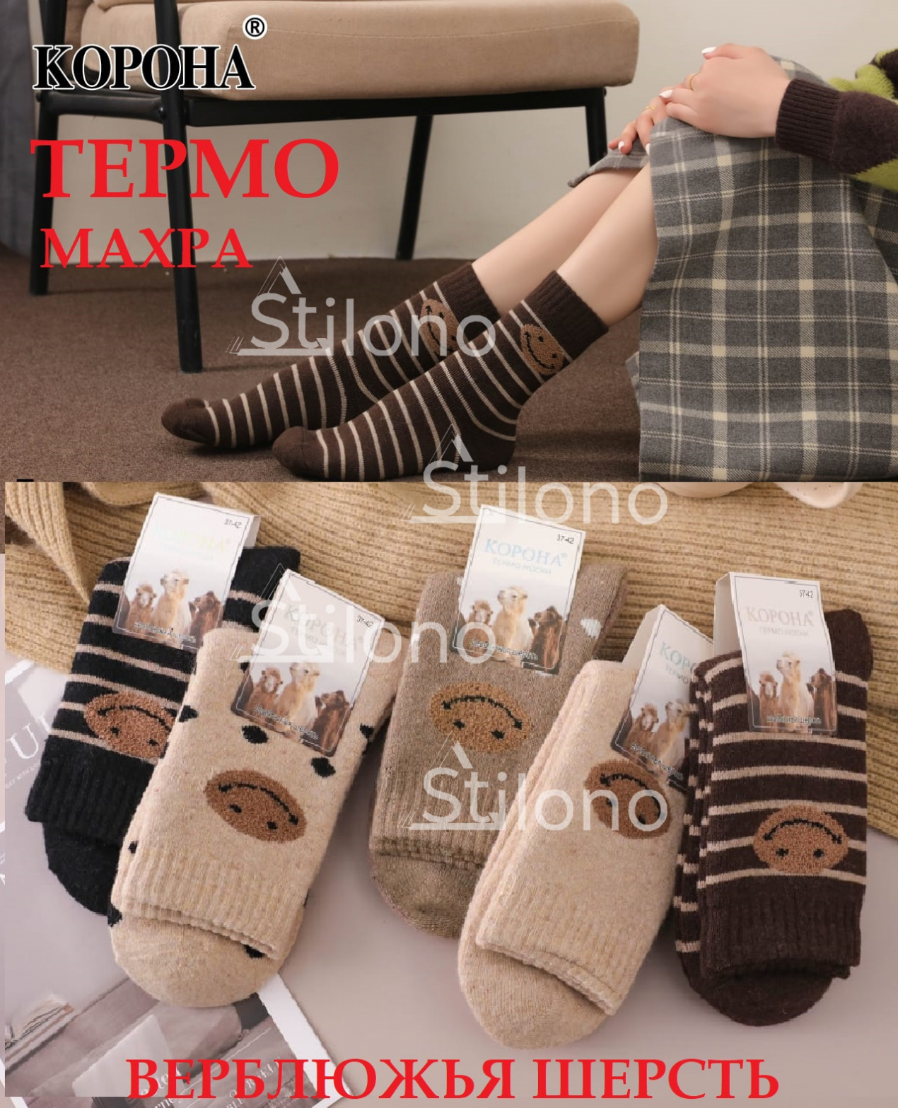 Женские махровые термоноски из верблюжьей шерсти